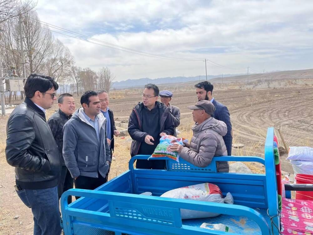 3月30日-4月2日,作物研究所承担的“兰州市(胡麻抗逆育种)引进国外智力成果基地”项目邀请巴基斯坦植物营养专家ABDUL GHAFFAR、ZAID ASHIQ KHAN和MUBASHER NASIR博士一行三人来我院开展合作交流及现场观摩活动。先后观摩了景泰县砂田文冠果套种胡麻示范区、盐碱地胡麻栽培技术示范区、永靖县文冠果产业示范园以及甘肃隆高科技发展有限公司,现场发放了胡麻良种并与相关单位就农业科技和乡村振兴战略等进行了交流。作物研究所赵玮研究员,生物技术研究所赵瑛副研究员,景泰县农技中心主任张举军等一起陪同观摩。