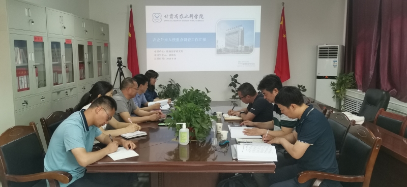 植保所所长、党总支书记郭致杰对黄宏坤处长一行的到来表示欢迎,就主持承担的甘肃省农业入侵物种普查和重点监测项目进展、质量控制、发生防治情况和技术指导培训及科普宣传等工作进行了汇报交流,就项目实施过程中存在的问题进行咨询交流讨论。并带领专家组参观了我院外来入侵生物监测与风险评估重点实验室采集制作的入侵植物标本、病虫标本及所昆虫标本库等,并在七里河、西固等地进行了现场核查。