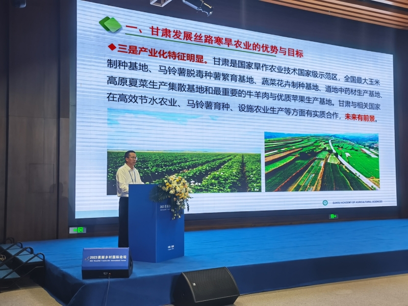 7月26-27日,党委委员、副院长杨天育带领院办公室负责同志在陇南市康县参加了由省政府和农业农村部主办的“2023美丽乡村国际论坛”,并在“美丽乡村和现代丝路寒旱农业发展”分论坛上做了题为《强化科技供给 支撑寒旱农业高质量发展》的报告。 农业农村部党组成员、副部长邓小刚出席论坛并作主旨演讲,省委副书记、省长任振鹤致辞,有关国家驻华使节、国际组织代表、国内外专家学者等参加了论坛活动。