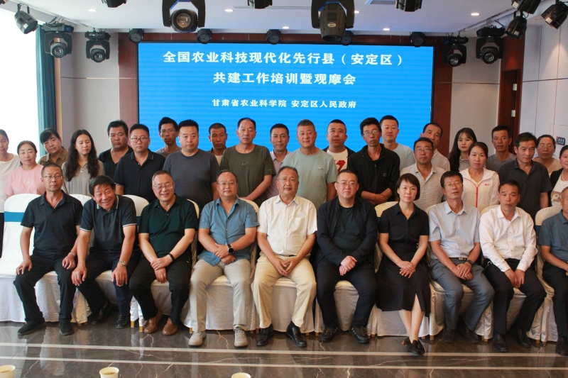 为深入推进省农科院与安定区农业科技现代化先行县共建工作,进一步落实共建责任,2023年8月30日至9月1日,甘肃省农业科学院马铃薯研究所在安定区举办全国农业科技现代化先行县(安定区)共建工作培训暨观摩会。会议由马铃薯研究所副所长马丽荣主持,省农科院副院长吕和平出席并讲话,马铃薯研究所党总支书记、国家马铃薯产业体系岗位科学家文国宏和安定区农业农村局局长马伟旗致辞。区农业技术推广服务中心、区马铃薯产业开发办公室,省农科院旱地农业研究所、农产品贮藏加工研究所、植物保护研究所、农业经济与信息研究所,安定区马铃薯种薯企业、种植合作社、种植大户等50余人参加了培训暨观摩会。