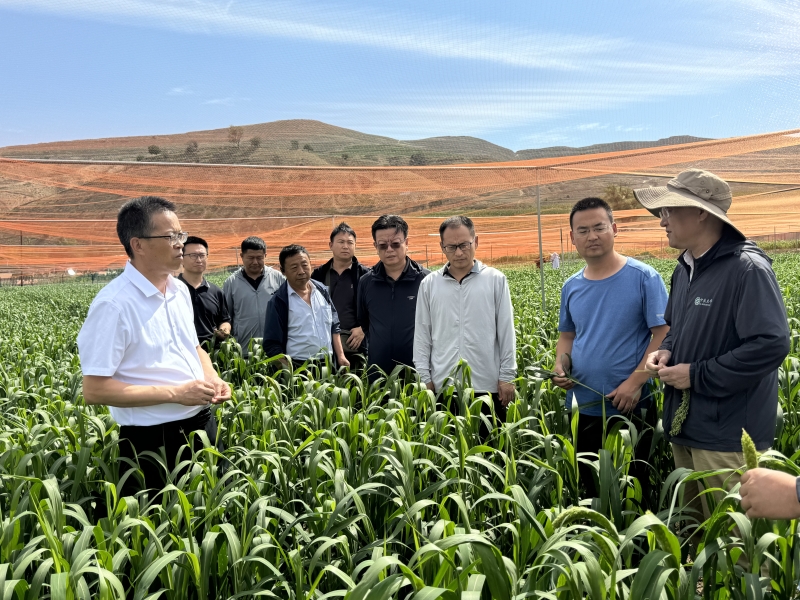 7月16-17日,国家谷子高粱产业技术体系首席科学家、中国农业科学院作科所刁现民研究员,带领东北、西北和华北地区相关农科院所从事高粱谷子糜子研究专家团队到我院会宁试验站考察指导,党委委员、副院长杨天育陪同考察。