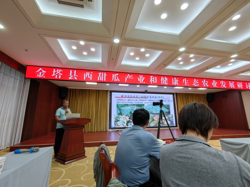 活动期间,专家们观摩了金塔县优质甜瓜生产示范园与西甜瓜健康种子生产基地,田间考察并品鉴了430个西甜瓜品种,为金塔县推荐优良甜瓜新品种9个,西瓜新品种9个。座谈会上,兰州综合试验站站长、蔬菜研究所研究员杨永岗做了《金塔县西甜瓜产业发展建议》的报告,为金塔县西甜瓜产业发展建言献策。