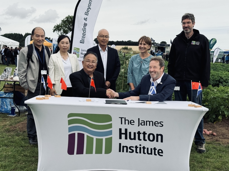 吕和平一行与JHI所长Colin Campbell、马铃薯遗传研究室负责人Ingo教授及其他研究人员开展了深入交流和讨论,并就马铃薯分子育种、抗病育种、病虫害防控技术、人才培养等领域与JHI签署合作备忘录。