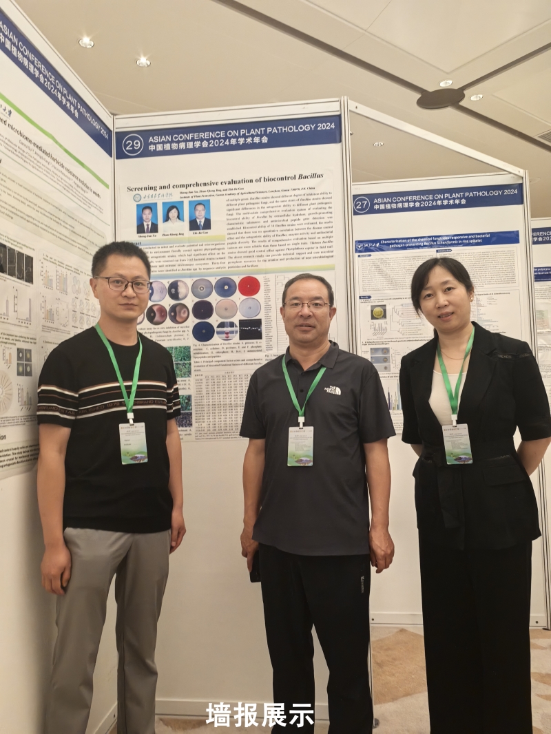 中国彭友良教授和周雪平教授、加拿大Xin Li教授、日本Yoshitaka Takano和Yusuke Saijo教授、韩国Kee Hoon Sohn和Jihyun Kim教授、美国Frank White 教授、法国Serge Savary 教授和印度的Binod Bihari Sahu教授等围绕植物病理学的前沿进展作了特邀报告。大会设置10个专题分会场进行分组交流,展出内容和形式丰富多彩的墙报205份。植物保护研究所科技人员依专业方向参加了学术交流,生防团队展示了题为“生防芽孢杆菌的筛选及综合评价”墙报。会后,植保所科技人员到吉林省农科院进行了参观交流。