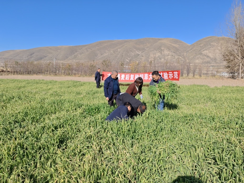俞海、安耕讲到,古浪县为我省第一大养羊大县,饲草短缺,麦后复种饲草大麦不仅解决我县饲料短缺问题,同时提高土地利用率,实现一年两收,增加农户收益,更为种植业结构调整提供了新的途径;要立即组织古浪县养殖大户对试验示范田进行现场参观,将这一技术在古浪县大面积推广应用;希望种植大户尽快学习和应用这一技术,将科技成果转化为实际生产力,实现农业增效、农民增收。