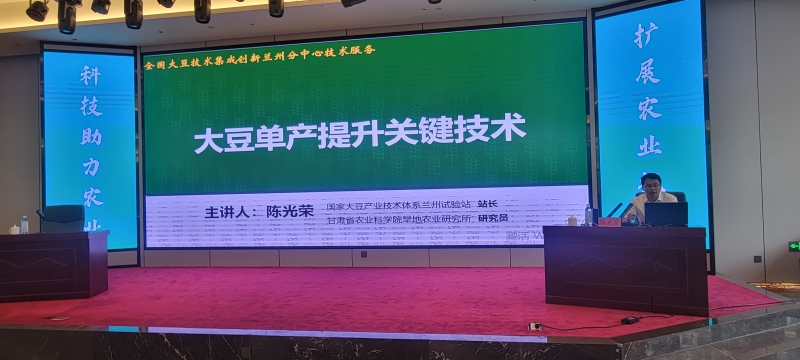 近期,国家产业技术体系兰州大豆综合试验站结合“全国大豆技术集成创新中心技术服务”“大豆单产提升行动”“农科专家陇上行”等科技服务行动,在我省陇东环县,中部地区榆中县、靖远县,天水秦安县及陇南康县等5个县区开展大豆单产提升关键技术培训。兰州大豆综合试验站站长、旱农所副所长陈光荣研究员及团队成员,主要针对大豆生产中存在的品种选择、群体配置、水肥管理等方面的问题进行培训指导,累计开展培训6场(次),培训基层农技人员、新型经营主体及种植户300余人,受到当地政府、农技部门及种植户一致好评。