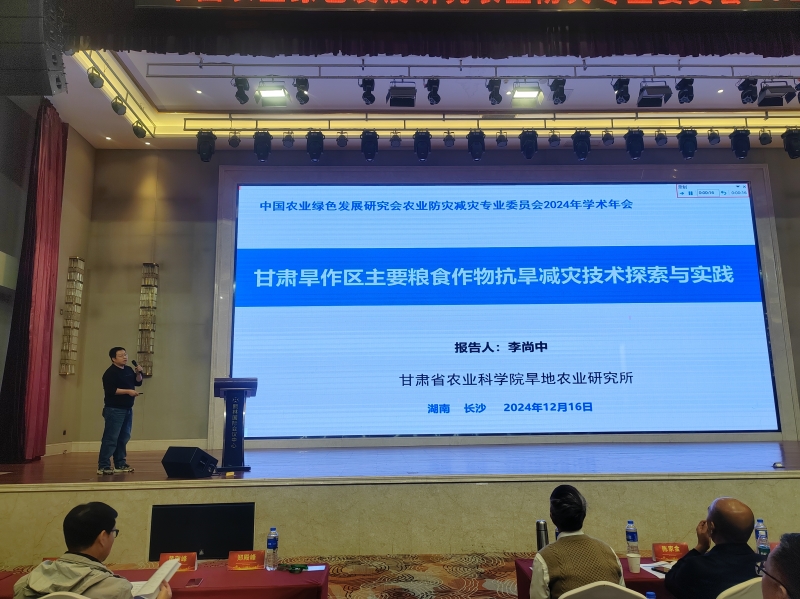 会上,30余位专家学者围绕“农业防灾减灾”主题,就农业气象与气候变化应对、作物气象灾害的响应及管理、智慧农业与技术应用、农业保险与风险管理、农业生态监测与保护、农业病虫害防控等方面作大会报告。我院旱农所副所长李尚中研究员作了题为《甘肃旱作区主要粮食作物抗旱减灾技术探索与实践》的报告。旱农所王淑英、王磊、周刚和胡靖宇等科技人参加会议。其间,李尚中研究员当选为农业防灾减灾委员会常务委员,王磊副研究员当选为理事。