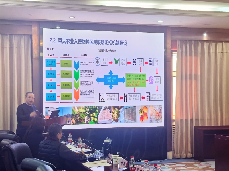 2月15日至18日,“十四五”国家重点研发计划项目“重大农业入侵生物扩张蔓延机制与高效防控技术研究(2021YFD1400200)”项目2024年度总结会在北京召开。会议邀请贵州大学宋宝安院士,农业农村部巡视组王福祥研究员、种植业管理司王建强二级巡视员等9位专家对项目实施进展进行点评指导,我院植保所6名项目人员参加会议。