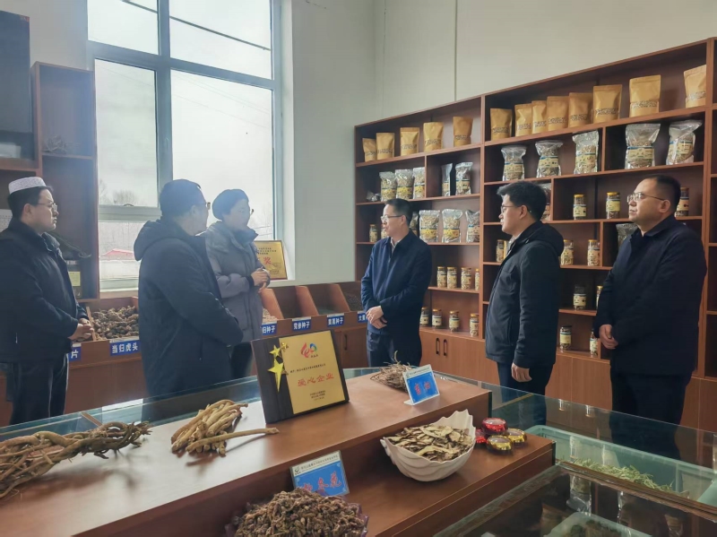 杨天育一行先后查看了产业研究院基地、寨子沟中药材种植加工企业、关家川设施农业基地、刘集乡饲草种养加示范点、大河家镇蔬菜产业园、积石山县牛羊繁育中心、院积石山油菜繁育中心基地、禹之菇菌棒生产车间、禾森藜麦种加合作社等,并听取汇报,对我院在积石山开展科技帮扶、技术服务、人才培养、项目执行情况等做了全面的了解,通过走访,详细了解技术提升和产业发展过程中存在问题。