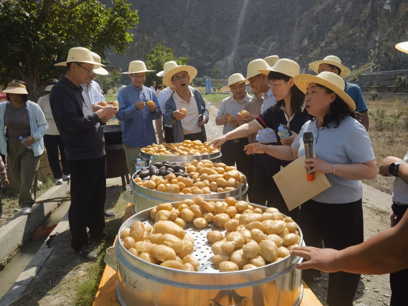 与会专家深入田间开展实地评估,一致认为试验示范区马铃薯植株健壮、根系发达、叶色浓绿,特别是块茎膨大均匀,展现出显著增产潜力,对项目实施效果给予了充分肯定,同时,对项目后续方案的实施提出了优化完善的建议。