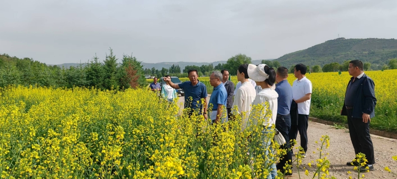 参会人员实地考察了和政县达浪乡和马家堡镇不同春油菜品种的抗旱和抗病表现,深入了解单产提升关键技术。并针对苗期管理、水肥高效利用以及病虫害绿色防控等方面进行现场指导;在积石山县柳沟乡观摩千亩地膜精量播种春油菜绿色高质高效示范点,重点研讨了作物所选育的新品种“陇油杂3号”的生长情况。