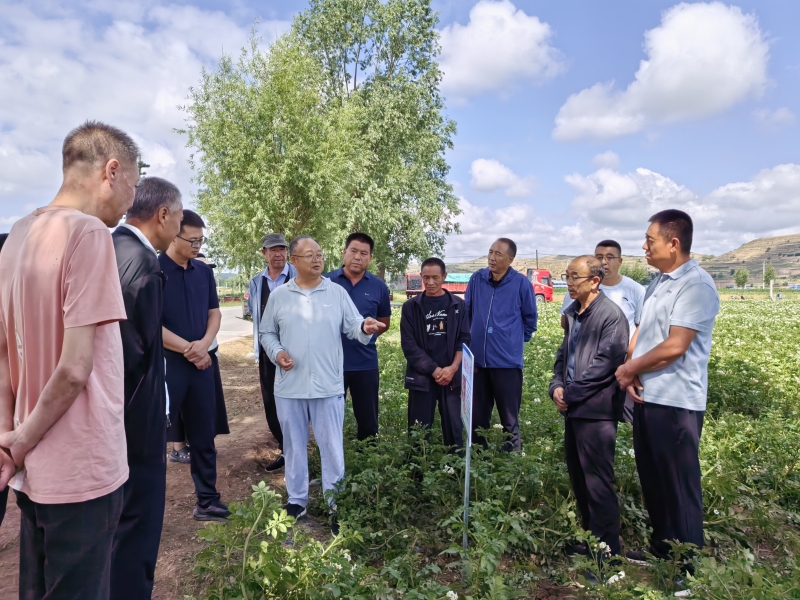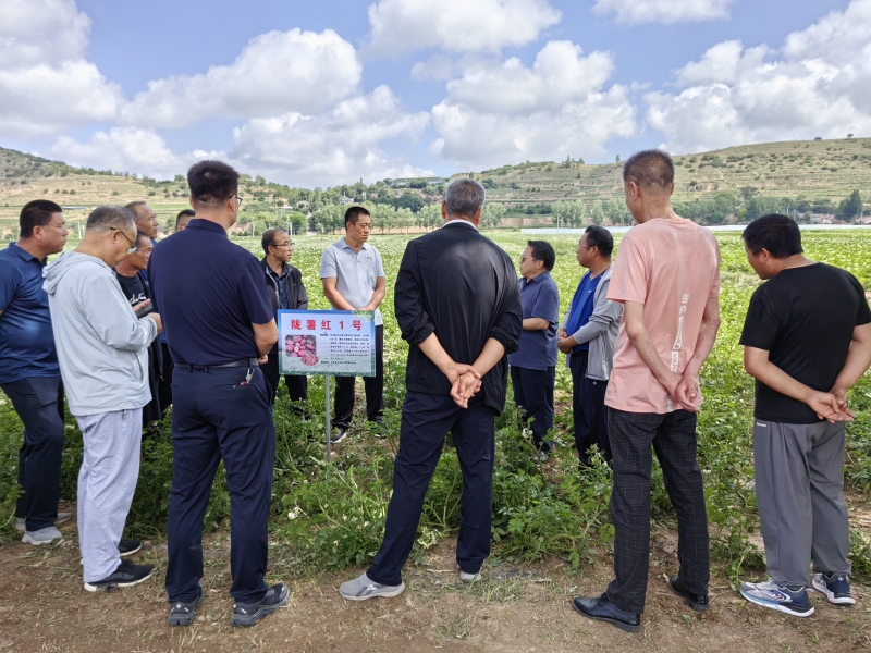 马铃薯所专家文国宏研究员、李掌研究员、郑永伟高级农艺师根据当地马铃薯中期长势,开展了” 病虫害防治、晚疫病防控、膜上覆土、”等6个方面的技术培训,共培训农户20余人,现场解答了合作社技术人员、种植户提出的关于马铃薯在种植过程中遇到的问题,并与相关服务村协商沟通了后续技术服务内容。随后对陇薯23号、陇薯红1号长势情况进行现场观摩。展示田示范展示的陇薯7号,陇薯20号长势喜人,试验示范的10个品种的长势差异明显,为筛选出适宜当地种植的马铃薯品种奠定了基础。