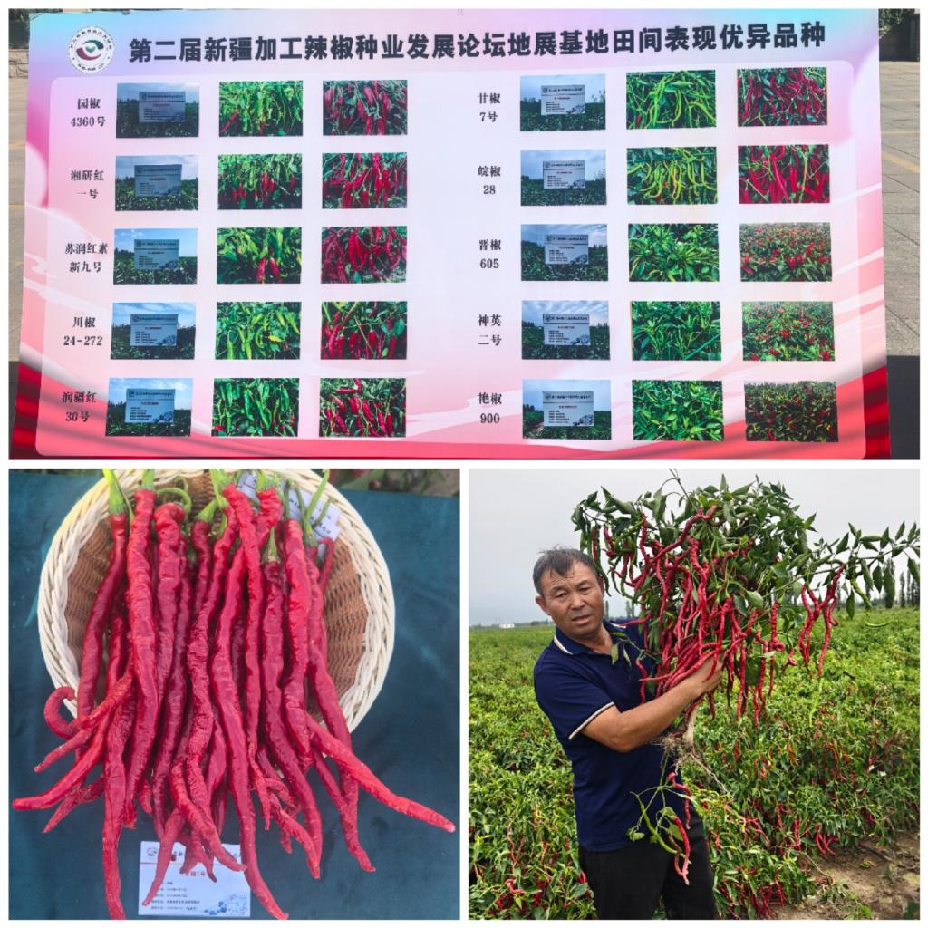 在巴润哈尔莫敦镇哈尔乌苏村的品种地展中,展示了来自全国相关育种单位的201个辣椒新品种。我院蔬菜研究所送展的‘甘椒7号’因其植株适应性强、连续坐果性好、产量高等优势,被评选为第二届新疆加工辣椒种业发展论坛地展基地田间表现优异品种。
