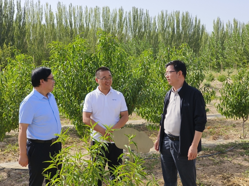 9月4日,院党委委员、副院长李允对国家桃产业技术体系兰州综合试验站敦煌示范县月牙泉镇鸣山桃园、七里镇桃产业基地和极干旱荒漠区特色林草种质资源基地开展调研工作,深入了解李光桃的种植现状、产业基地科研成果转化及产业发展前景。林果花卉研究所王晨冰研究员、敦煌市林业技术推广中心高级林业工程师马希武陪同观摩。此次调研旨在进一步推动敦煌李光桃产业的科技升级、助力乡村振兴。