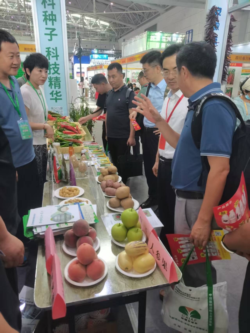 我院此次参展成果丰硕:重点推介了自主选育的陇春系列小麦、陇薯系列马铃薯、甘科系列辣椒以及蔬菜、林果等新品种,富硒胡麻油、菜籽油、马铃薯抑芽粉剂、中药材含片、青稞面等特色新产品。绿星公司选育的辣椒品种线椒“X08”,获评展会推介品种。重庆市农业科学院党委书记、副院长文明维一行莅临我院展台,就科技成果转化工作进行了调研交流。同时,通过现场发放技术资料、单位简介宣传页等形式,系统推介我院最新科技成果,进一步扩大了行业知名度影响力。