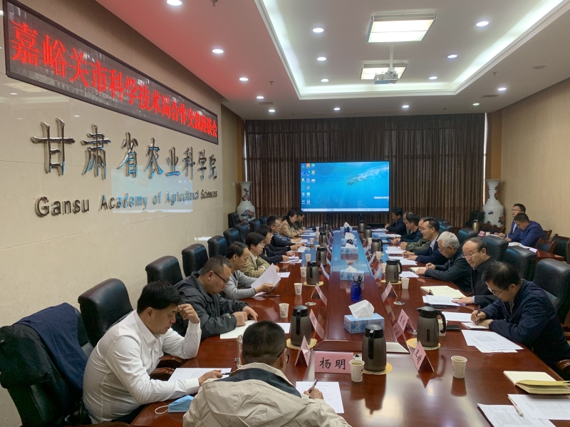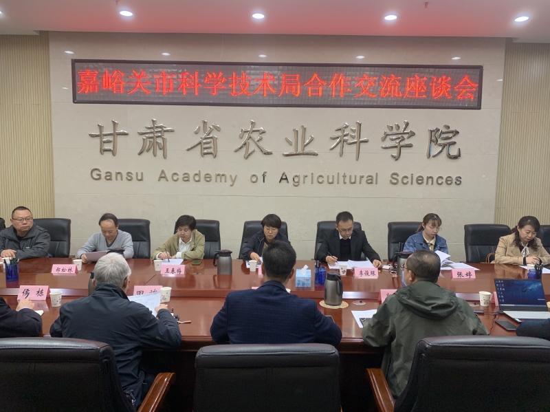 4月24日嘉峪关市科学技术局党组书记、局长宋文君带领嘉峪关市科学技术局生产力促进中心负责人及中核嘉华设备制造股份公司、甘肃酒钢集团西部重工股份有限公司、嘉峪关大友企业集团有限公司、嘉峪关大友嘉镁钙业有限公司、甘肃嘉恒产业发展(集团)有限公司相关技术人员一行10人来院调研科技合作事宜。院办公室主任胡新元主持会议,科研管理处、科技成果转化处、林果花卉研究所、蔬菜研究所、植物保护研究所负责人及相关专家参加座谈。