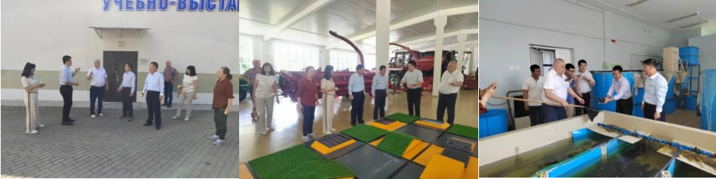 尤里·列昂尼多维奇副院长陪同代表团成员参观了白俄罗斯国立农业科学院院史展览及白俄罗斯国立农业科学院作物种质资源库、教学展示中心、鱼类养殖科研研究中心、奶牛养殖教学展示中心,中国学生交流中心、种质资源库等。并在白俄罗斯国立农业科学院试验田详细介绍了当地特色牧草山羊豆草的生长特性、营养价值及机械化收储过程。