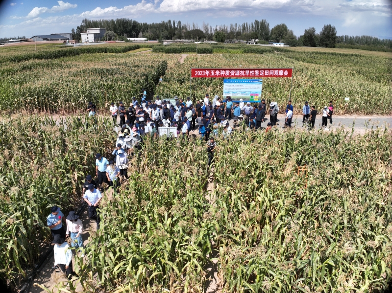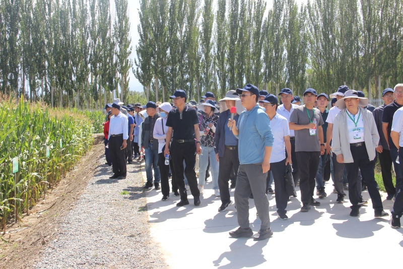 会议分交流研讨和田间观摩两部分。在交流研讨环节,中国农业科学院作物科学研究所李春辉副研究员、黑龙江省农业科学院玉米研究所扈光辉研究员、河南省农业科学院李会勇研究员、我院作物研究所周玉乾研究员、贵州省农业科学院旱粮研究所吴迅研究员分别就全国不同区域玉米生产、育种进展、种质资源精准鉴定、优异种质创制及利用等方面进行交流研讨;甘肃亚盛种业郑富国院长介绍了甘肃玉米制种现状及面临问题。在田间观摩环节,参会代表现场观摩了1408份种质高强度干旱鉴定、685份种质限量灌溉环境鉴定、77个新品种限量灌溉环境鉴定及21个西北区新品种展示。随后,参会代表前往沙井镇玉米制种基地观摩。