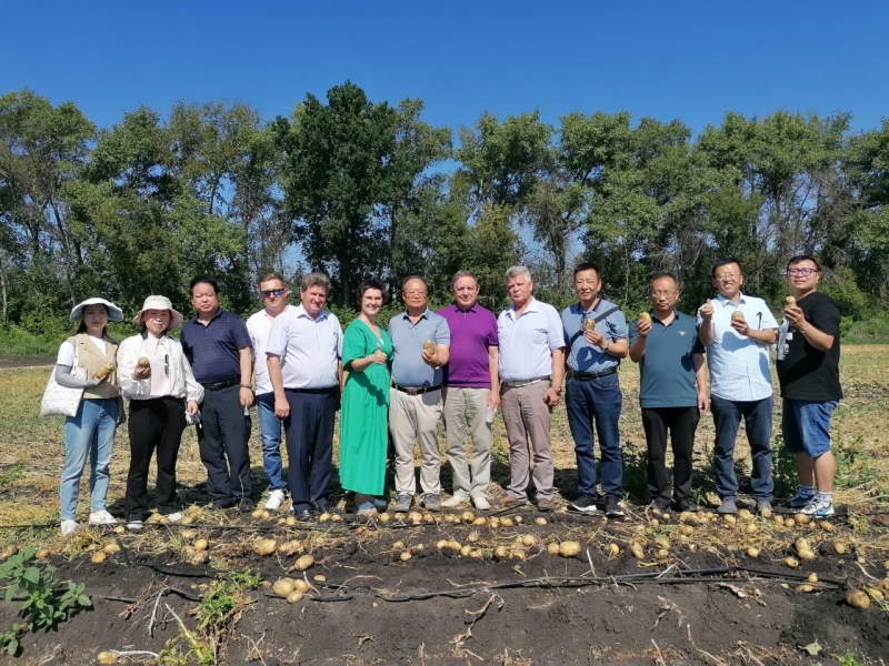 中俄双方互换的10个马铃薯品种在俄罗斯沃罗涅日地区开展了“中俄优良马铃薯品种试验示范及离体快繁技术研究”,访问团成员与沃罗涅日大学科研人员对试验品种进行了田间鉴定,并对马铃薯组培快繁技术进行了探讨和交流。