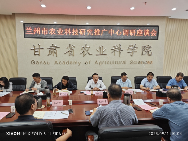 根据《省委组织部关于落实“强省会”行动部署要求强化组织保障的若干措施》(甘组办字〔2023〕56号),为落实中共兰州市委组织部相关工作要求,9月11日,兰州市农业科技研究推广中心(兰州市农科院)副主任谢成俊等一行14人来我院进行调研。院党委委员、副院长吕和平出席调研座谈会,院人事处、科研处、成果处、财务处和植物保护研究所等10个相关研究所的负责同志参加座谈。