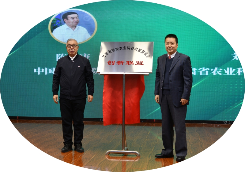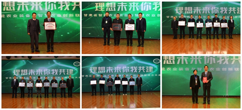 联盟成立大会上,陈学庚院士和刘国汉共同为“甘肃省智能农业装备与智慧农业创新联盟”揭牌。刘国汉为联盟理事长单位——甘肃省农业科学院农业经济与信息研究所授牌。牛振明、徐利群分别为副理事长单位——甘肃省农业机械化技术推广总站、甘肃农业大学机电工程学院授牌。陈向花为联盟理事长王志伟研究员颁发了聘书。樊廷录、田青、李允、吕和平分别为常务理事单位代表授牌。联盟理事长王志伟为创新示范基地单位代表授牌。