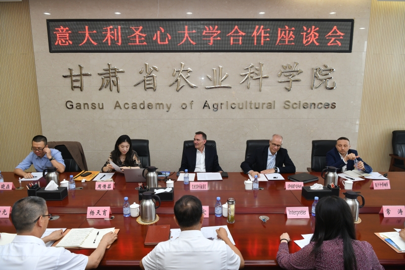 艾迪里奥•玛佐莱尼助理校长对我院的热情接待致以诚挚的谢意。他表示,圣心大学非常期待与甘肃省农科院进一步深化合作关系,并诚挚邀请我院科研人员访问圣心大学。随后,皮耶·桑德罗·高科切利院长系统介绍了农业食品和环境学院机构与学科构架、人才队伍、特色科研方向及主要研究成果,为双方合作提供了具体支撑依据。