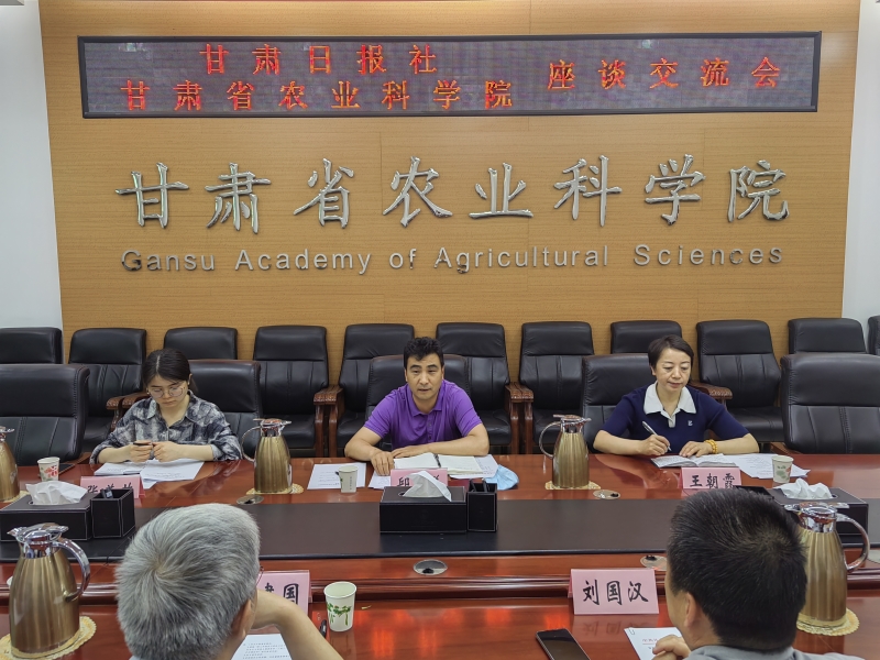 座谈会上,双方介绍了单位基本情况,围绕深入开展学习贯彻习近平新时代中国特色社会主义思想和“三抓三促”行动,深化沟通协作、加强宣传工作进行深入交流,共同探讨深挖典型素材、改进宣传模式、加大宣传力度的思路举措,并就深化宣传合作、同题共答支撑全省农业产业发展交换了意见。刘国汉指出,近年来,甘肃日报社深入农村一线,积极宣传我院农业科研成果服务地方产业发展和科研人员把论文写在大地上的典型事迹,为提升我院影响力作出了贡献。省农科院和甘肃日报社要加强协作交流,深化业务联系,推出更多反映我院加强科技创新、服务乡村振兴的作品,积极宣传报道我院研究成果和科技人员潜心科研的生动场景,进一步提升宣传的虹吸效应和我院对外展示度,更好地服务全省经济社会发展。邱暄美在听取了与会人员的意见后表示,甘肃日报社将一如既往发挥自身优势,和省农科院一道做深做实农业科技领域的宣传报道工作,为全省农业农村发展提供有力的舆论支持。