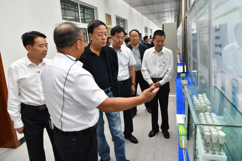 武维华一行先后参观了我院农业科技馆和种业科技成果展,检查了农作物种质资源库、果树种质资源圃以及马铃薯脱毒繁育中心,并听取了“西北种质资源保存与创新利用中心”项目建设情况汇报。