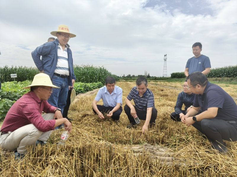 在民乐县副县长展兴华的陪同下,徐明岗院士、院党委书记刘国汉观摩了华瑞农场青贮玉米/大豆宽幅间作千亩示范方,详细了解了玉米、大豆机械化播种、水肥分带控制、土壤封闭处理等技术应用效果,课题负责人、土肥所所长汤莹汇报了该技术模式在产能提升、土壤增碳培肥方面取得的最新研究进展;在肃州区总寨镇单闸村、金塔县金塔镇西沟村观摩了玉米套作繁种豌豆复种绿肥、浅埋滴灌小麦复种秋菜(饲草)两个千亩示范方,并深入田间观察作物田间长势及水肥利用情况;在山丹县清泉镇郇庄村,观摩了小麦-大豆宽幅带状种植、麦后复种燕麦综合技术模式示范方,对该模式在提升水肥利用效率、进一步提高机械化作业水平等方面给予了指导。