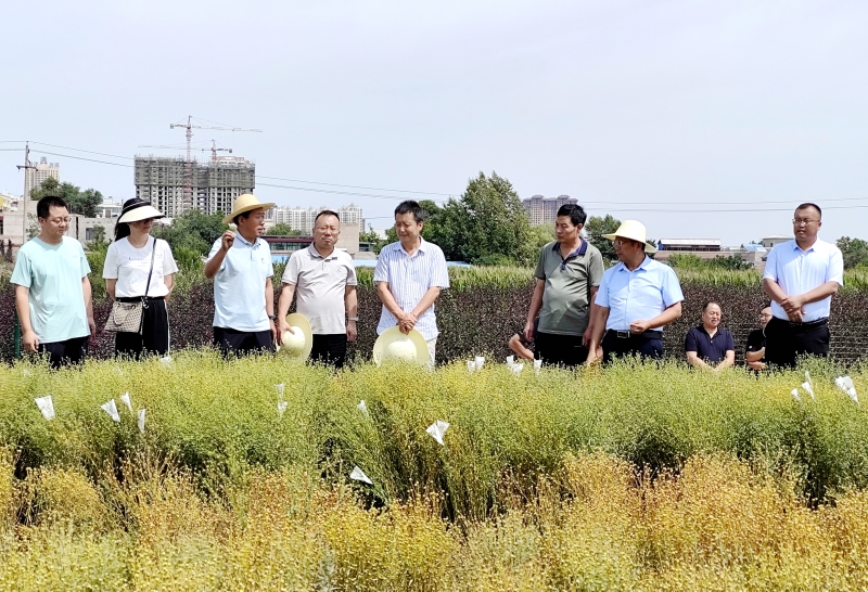 刘国汉实地察看了试验站开展的胡麻新品种抗旱鉴定试验、省区域试验、田间栽培试验以及胡麻种质创新和育种试验等工作。刘国汉对试验站田间试验的规范管理和相关工作给予充分肯定。他强调,兰州试验站今后要在胡麻种质资源创制与新品种选育、抗白粉病技术研发、机械化、成果转化和创新研究领域持续发力,以科技创新培育和发展新质生产力,推动胡麻全产业链的快速发展。试验站站长叶春雷、团队成员王炜作了汇报。