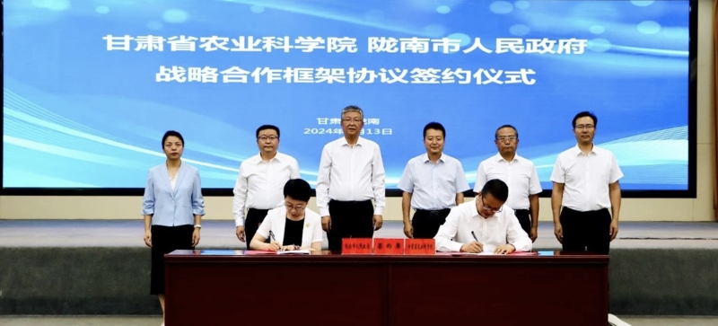 8月13日,省农业科学院与陇南市战略合作框架协议签约仪式在武都举行,并挂牌成立甘肃省农业科学院茶叶研究所,院党委书记刘国汉、陇南市委书记张柯兵出席仪式并致辞。院党委委员、副院长杨天育出席,市委副书记、市长刘永革主持。