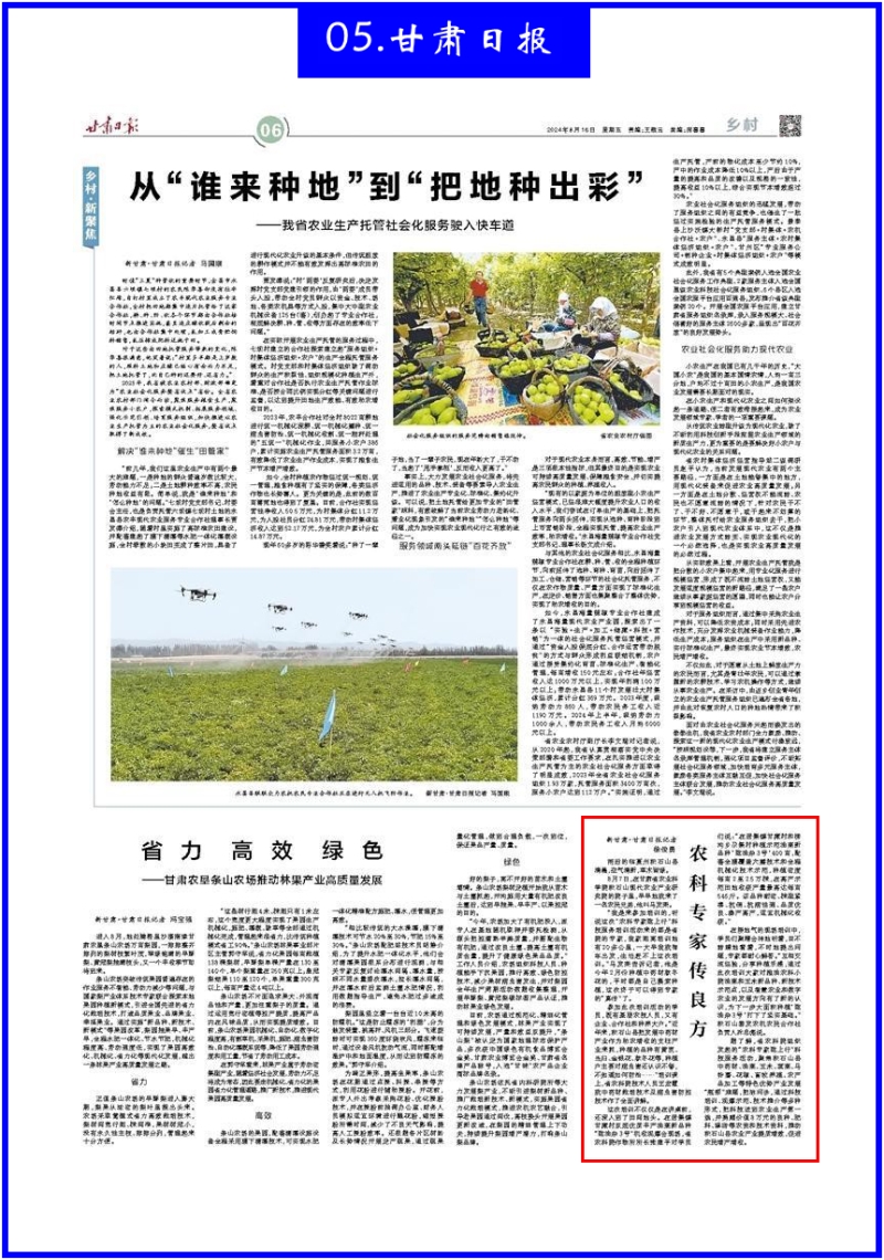 8月16日,甘肃日报刊发《农科专家传良方》。