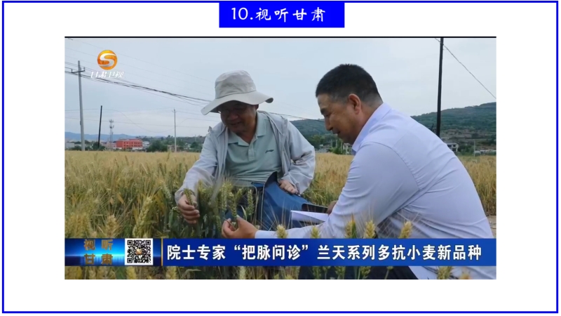 6月17日,甘肃广电总台以《院士专家“把诊问脉”兰天系列多抗小麦新品种》为题报道我院清水试验站小麦育种工作成效。