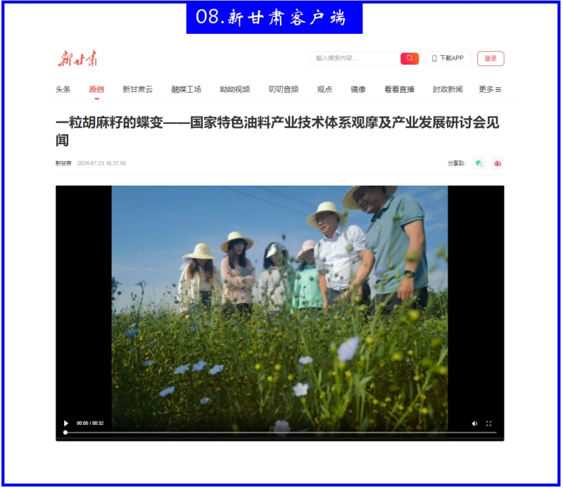 7月23日,新甘肃客户端以《一粒胡麻籽的蝶变——国家特色油料产业技术体系观摩及产业发展研讨会见闻》为题报道我院助力油料产能提升,促进胡麻产业高质量发展成效。