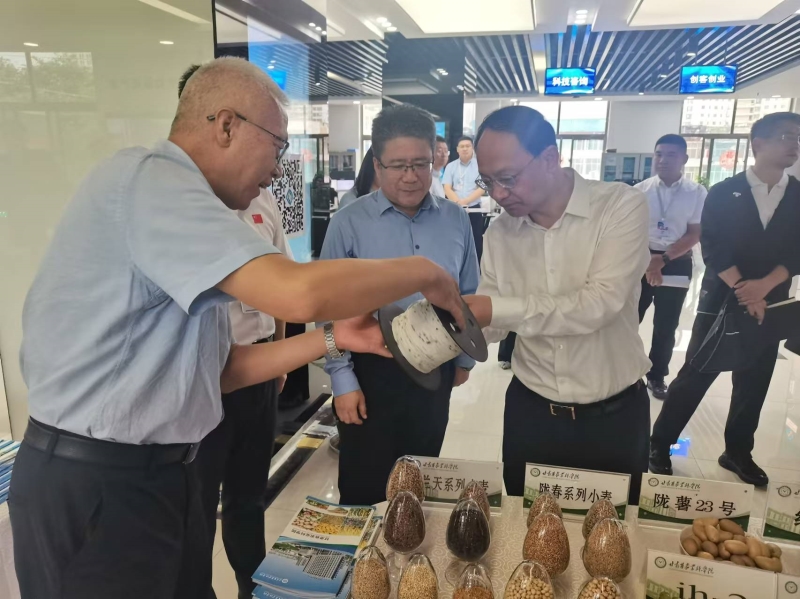9月4日,王钧副省长在兰州科技大市场管理有限责任公司调研期间,到我院科技成果展台调研指导。王钧详细询问了我院近年来培育的“兰天、陇春系列小麦、陇单系列玉米、陇薯系列马铃薯、陇椒系列辣椒、陇藜系列藜麦等新品种,以及马铃薯组培苗、人参果组培苗、百合脱毒组培苗、中药材种子绳”等新产品,并品鉴了培育的瓜果新品种,对我院农作物新品种选育、致力于现代农业产业发展和服务全省“三农”工作给予了充分肯定和高度评价,强调要持续不断产出更多好品种,以提高农业新质生产力引领农业科技高水平自立自强,为建设农业强省贡献更大力量。