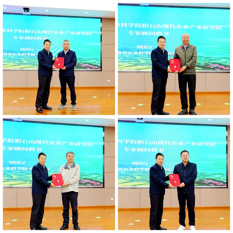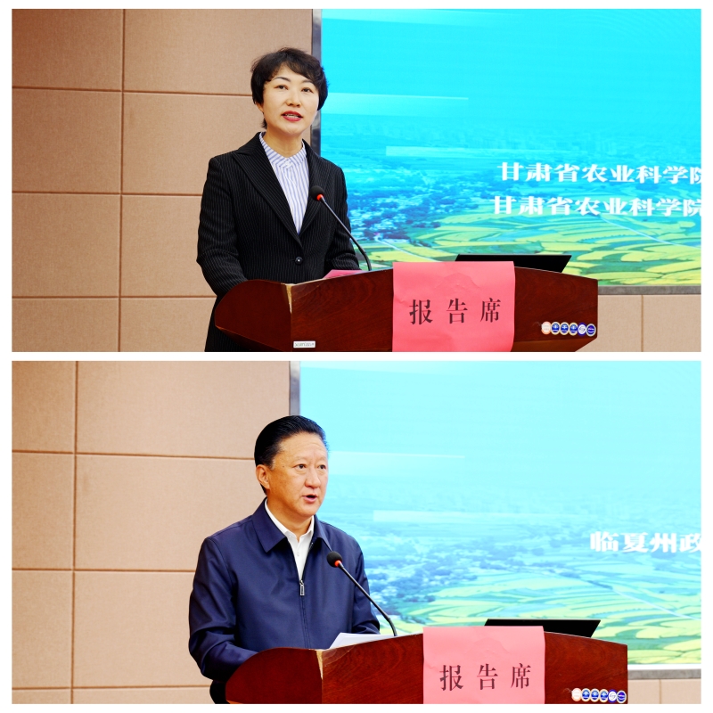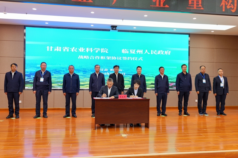 会上,刘国汉向中国工程院院士、浙江大学喻景权教授等5位专家颁发了《甘肃省农业科学院积石山现代农业产业研究院专家顾问聘书》,田青代表甘肃省农业科学院与临夏州人民政府签订了《协同科创支撑地方农业产业发展战略协议》,就进一步加强科技交流与合作,促进科技成果转化与现代农业发展建立了院地科技合作长效机制。