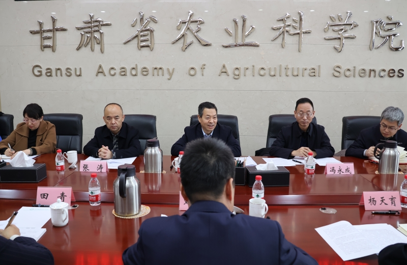 11月29日,省科协党组书记、第一副主席包俊宗一行莅临我院调研交流并座谈,院党委书记刘国汉出席并主持座谈会。省科协党组成员、副主席冯永成、张涛、张兴中,省农科院党委委员、副院长田青、杨天育参加。