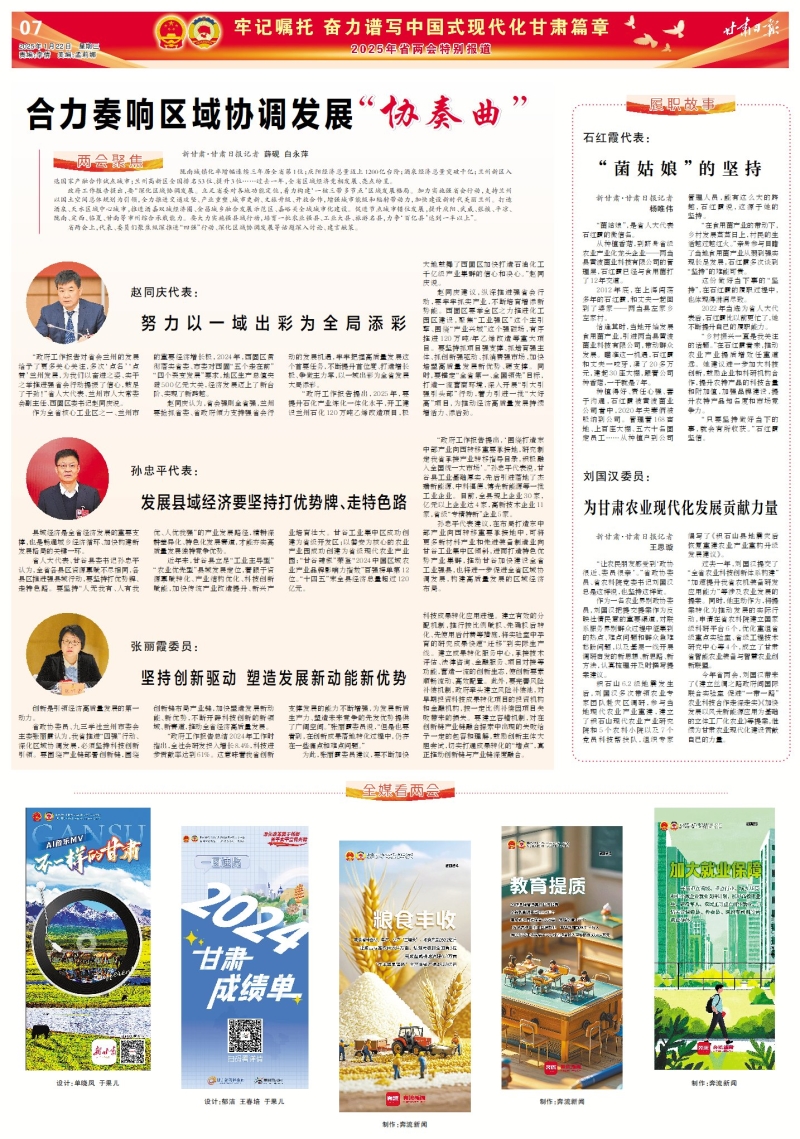 2025年1月21日,《甘肃日报》“2025年省两会特别报道”版面以“刘国汉委员:为甘肃农业现代化发展贡献力量”为题报道省政协委员、省农科院党委书记刘国汉的履职故事;2025年1月22日,新甘肃客户端“聚焦2025甘肃两会·委员说乡村振兴”栏目专访省政协委员、省农科院党委书记刘国汉,报道如下: