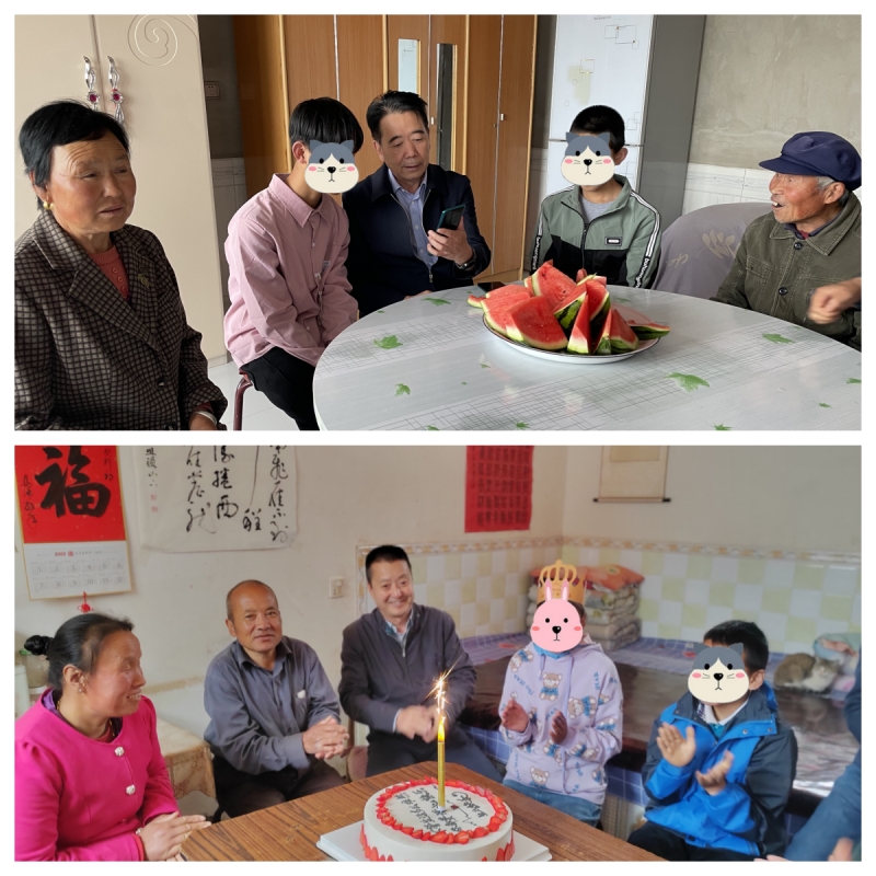 5月27日,院长马忠明来到三名事实无人抚养儿童家中,通过视频与在外地实习的大姐取得联系,并与在家的两名弟弟一同唠家常,了解他们的生活学习情况。马忠明鼓励结对的孩子们克服困难、努力学习,争取考上理想的大学,用知识改变命运,将来成为对国家、对社会、对家庭有用的人。5月25日,是党委书记刘国汉结对帮扶事实无人抚养儿童的生日。清晨,刘国汉带着生日蛋糕来到结对儿童家中,与两个孩子和监护人一起庆祝,祝愿孩子们茁壮成长,学习进步。刘国汉叮嘱孩子们要听从长辈的教导,好好学习、成长成才。并鼓励他们“尽管生活中会遇到很多困难,但只要你们积极面对,有党的关怀和很多叔叔、伯伯、阿姨的帮助,困难总会过去,希望你们笑口常开。”
