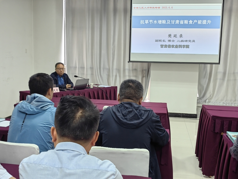 培训期间,先后邀请党委委员、副院长樊廷录、杨天育研究员分别做了题为《抗旱节水增粮及甘肃省粮食产能提升》和《粮食安全与藏粮于地藏粮于技战略选择》的专题讲座。此外,培训班还邀请我院候栋、马明研究员及甘肃农业大学胡江教授、中国农科院兰州畜牧与兽药研究所李建喜研究员结合我省农业产业发展需要,围绕培训主题分别做了专题辅导。培训期间,向培训学员发放了我院编撰的《科技支撑乡村产业振兴技术系列丛书》和《农科颉果-甘肃省农业科学院“十三五”科技成果汇编》等培训教材,希望通过培训学员的学习与宣传,促进科技合作与交流,加速科技成果转化,推动农业农村经济发展,为全省乡村振兴贡献力量。