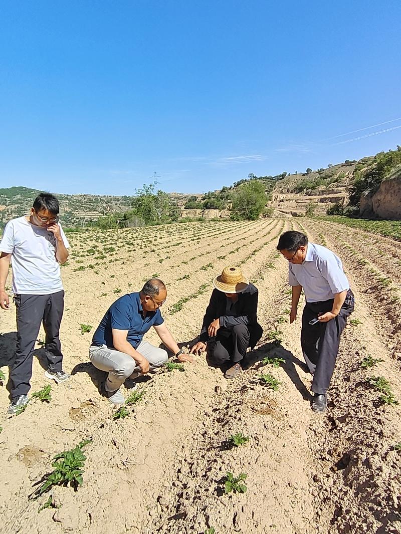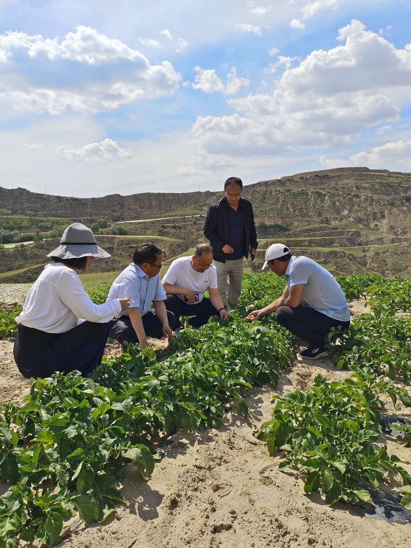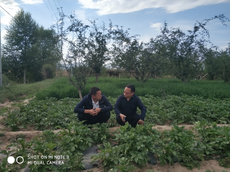 6月7日-15日,东乡县科技特派团团长、国家马铃薯产业技术体系高淀粉品种改良岗位专家、甘肃省农业科学院马铃薯研究所总支书记文国宏研究员一行,赴东乡县唐汪镇、坪庄等15个乡镇35个村及合作社,进行马铃薯出苗情况调查并开展生产指导服务,重点检查了国家重点研发课题“东乡县马铃薯产业绿色高效关键技术集成与示范”实施内容,逐一查看14个示范品种与27个试验品种的生长状况,检查了锁南镇马场村与王家村抗旱保墒肥料试验示范、汪集乡池沟村与董岭乡董家沟村机械化种植示范、龙泉镇荒山村与车家湾乡车家湾村绿色(撂荒地整治)种植示范、大树乡杨家村与坪庄乡坪庄三社富锌品种及技术示范、东塬乡林家村与河滩镇大塬村果园间作马铃薯示范、汪集瓦子岭与关卜乡胭脂村及坪庄乡田地博通公司脱毒种薯繁育基地、唐汪镇照壁山村与马巷村中早熟栽培示范与品种试验。针对生产中存在放苗不及时、起垄覆土不到位、蚜虫防治不重视等问题进行现场指导服务。先后指导服务35场次203人,参与WFP资助、甘肃富锌马铃薯小农户试点项目组织的“薯你最有锌”乡村厨艺大赛,向现场80多人宣讲富锌马铃薯品种及其栽培技术。
