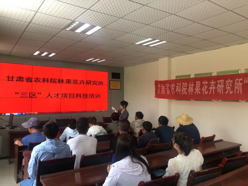 2023年6月9日,林果花卉研究所科技人员赴永靖县三塬镇下塬村及富景种植农民专业合作社开展“三区”人才项目科技培训。