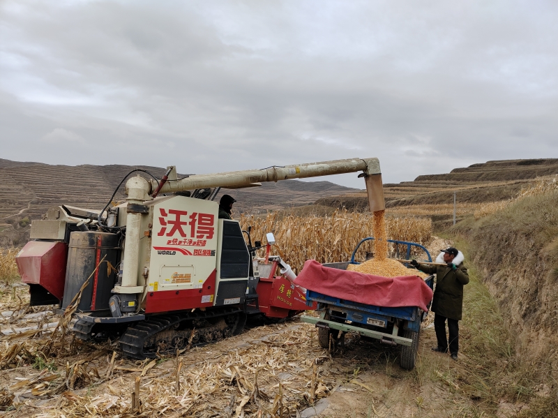 秋意正浓,会宁县玉米粒收绘“丰”景。11月5日,在国家重点研发计划“会宁半干旱区玉米谷子提质增效关键技术集成与示范”课题支持下,我院在会宁县丘陵山地举办玉米低水分籽粒直收技术观摩会。甘肃农业大学、会宁县农业技术推广中心、我院旱农所和作物所等专家到会指导,院党委委员、副院长、国家玉米产业技术体系兰州试验站站长樊廷录参加了观摩会。