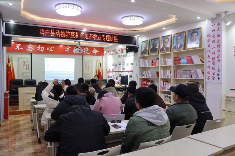 2023年11月14日—17日,应青海省海西蒙古族藏族自治州天骏县和我省甘南州玛曲县、碌曲县农业农村局、自然资源局邀请,我所正高级畜牧师窦晓利同志为其开展了草地畜牧业、种养结合草畜生态循环生产技术与模式、草畜平衡、草原生态修复、动物疫病综合防控等专题讲座,各县农业农村局、自然资源局、草原工作站、草原监理站、畜牧兽医站分管领导和科技干部、各乡镇场禁牧和草畜平衡工作分管领导与工作人员、兽防站站长及龙头企业、专业合作社负责人等100多人参加,培训中发放了《新时代乡村农业产业振兴发展案例及模式》、《乡村产业发展重大支撑品种》、《饲草种植与利用技术》等科普书籍,并深入当地牧场、围栏草场、牛羊产品加工直营店、肉品交易市场等,开展牦牛、藏羊养殖和草地补播修复、鼠害防治等技术现场指导与答疑解惑。