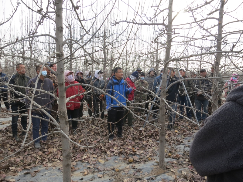 为促进景泰县梨优质高效生产,提高标准化管理水平,2023年11月20日至25日,我院林果花卉研究所科技人员,国家梨产业技术体系兰州综合试验站李红旭站长、团队成员赵明新副研究员应邀赴景泰县开展了为期一周的梨树冬季修剪技术培训与标准宣贯工作。