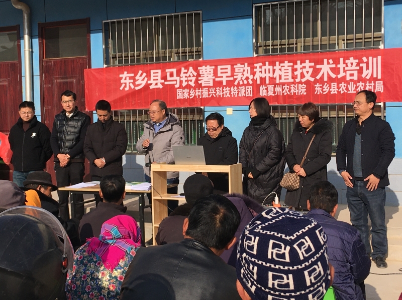 1月12日-15日,国家乡村振兴重点帮扶县东乡科技特派团马铃薯产业组在东乡族自治县马铃薯早熟种植关键技术培训。为了深入贯彻落实中共中央组织部等6部门《关于向国家乡村振兴重点帮扶县选派科技特派团的通知》要求,落实东乡县迎新春专业技术人才座谈会精神,通过培育“土专家”“田秀才”,着力提升全县农业主导产业质量效益和农业科技本土人才的专业素质水平,不断强化科技和人才的支撑作用,助推乡村产业实现高质量发展,进一步巩固拓展脱贫攻坚成果、全面推进乡村振兴。此轮培训工作围绕东乡县马铃薯产业绿色高效关键技术集成与示范、马铃薯产业提质增效关键技术集成与示范等项目内容,是推进农业科技进步、促进农业增长方式转变的重要举措,是构建农业增效、农民增收长效机制的重要着力点。由东乡县农业农村局制定2024年冬春农民适用技术培训方案,科技特派团为留住“人才”“技术”开展的技术培训。