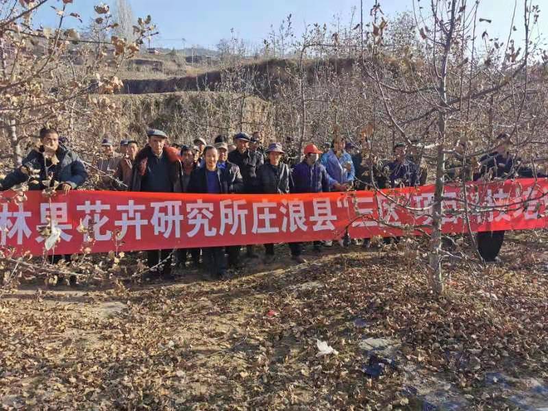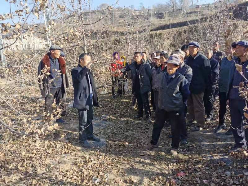 2021年11月24日-26日,科技人员赴庄浪县朱店镇万柳村开展了冬季果园管理培训,尹晓宁副研究员讲解了苹果树冬季修剪、冬季清园以及肥水管理等。本次培训是在果树经历夏秋干旱、采前冻害等自然灾害,果品产量与质量受到不同程度影响的情况下开展的,旨在提高果园管理水平、强化应对风险意识、增强从事果业信心。本次共计培训51人,发放果树伤口愈合剂80瓶,修枝锯12把。培训效果良好,得到了果农的一致认可。