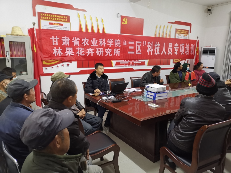 12月11日~12日,我院三区人才专项抗旱作物新品种引进与旱作栽培技术示范推广团队科技人员赴榆中县和平镇马家山村开展科技培训,马家山村各社果树栽培户30余人参加。