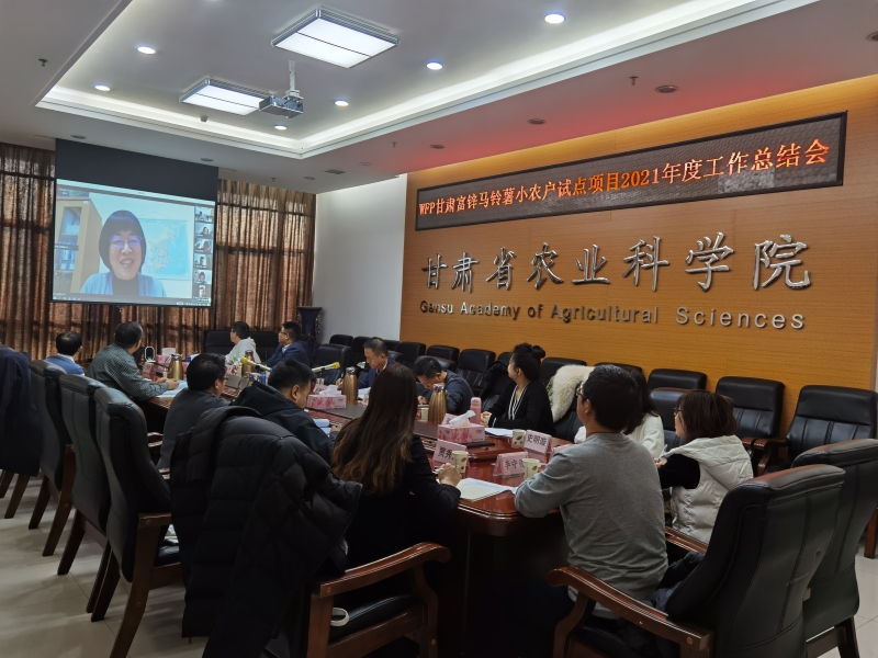 2022年1月12日,联合国世界粮食计划署(WFP)“甘肃富锌马铃薯小农户试点项目2021年度工作总结暨2022年工作安排会”在我院召开。会议由省农业技术推广总站赵贵宾站长主持,加工所党总支书记副所长胡生海致辞,省农业技术推广总站李星科长就项目执行以来财务运行情况和存在的问题进行了总结和说明,四个子项目负责人分别就各自承担的本年度任务完成情况及下年度工作计划进行了汇报。