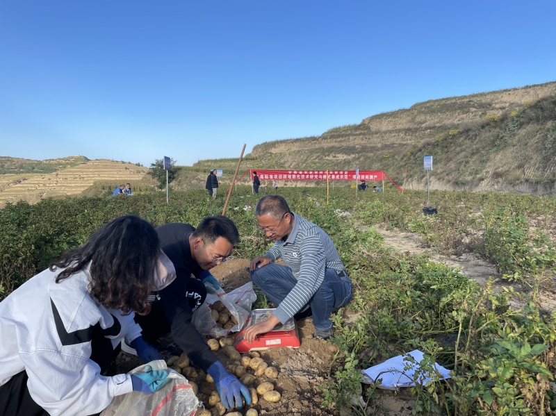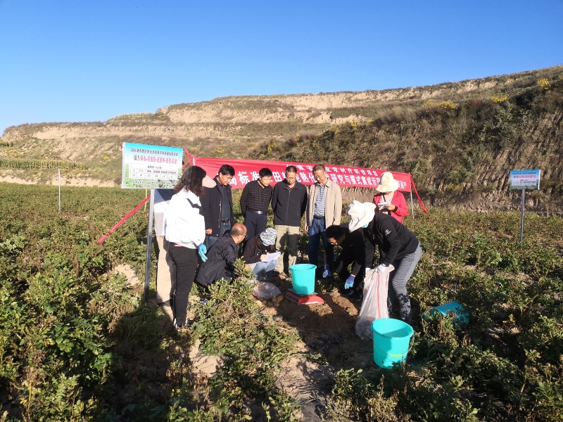 9月24-25日,我院旱地农业研究所与项目合作单位甘肃省农业技术推广总站邀请甘肃省农业农村厅李福总农艺师、甘肃省农业科学院杨天育研究员、中科院西北环境研究院谢忠奎研究员、甘肃省农业技术工程研究院刘强研究员、定西市农业科学研究院张明研究员等专家组成测产小组,对旱地农业研究所与甘肃省农业技术推广总站在安定区和静宁县联合实施的“高标准农田耕地熟化技术研究与模式集成示范”项目进行了现场观摩和测产。测产结果显示:在今年旱情十分严重的情况下,安定区立式深旋耕作+有机无机肥配施+土壤调理剂的综合培肥模式,使新垦高标准农田马铃薯亩产达1287.3kg,较对照增产24.23%;静宁县施用高量土壤调理剂使新垦高标准农田马铃薯亩产达到1263.3kg,较不施调理剂处理增产24.51%,商品率提高139.07%。从测产结果来看,研究提出的综合培肥模式可使新垦高标准农田培肥年限缩短2-3年。